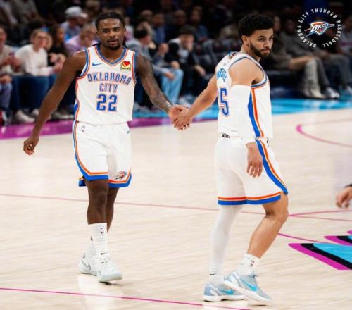 作为NBA卫冕冠军的俄克拉荷马雷霆,在常规赛大幕拉开后,一度展现出了舍我其谁的霸气,攻防两端极具统治力的表现,也让球迷看到了冲击金州勇士73胜神迹的希望,不过随后雷霆状态下滑连续输球,让这一希望变得非常渺茫,好在他们在核心亚历山大的率领下,重新回到了赢球的轨道之中,连斩爵士、灰熊、热火、马刺和火箭,取得了一波五连胜,巩固了自己西部领头羊的位置。
