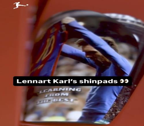 当地时间1月10日,据拜仁俱乐部杂志《51》披露,伦纳特-卡尔在每场比赛中都会随身佩戴与梅西有关的护腿板。这名17岁小将所使用的护腿板上,印有梅西身穿巴塞罗那球衣的形象。图片