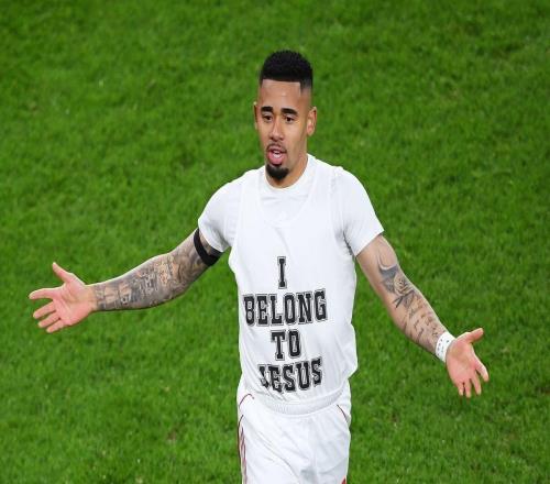 据《伦敦足球》报道,阿森纳前锋热苏斯在4-1大胜阿斯顿维拉的比赛中打进本赛季首球,随后脱衣庆祝,露出T恤内侧“I belong to Jesus”字样,这一举动可能违反英足总规则,或面临处罚