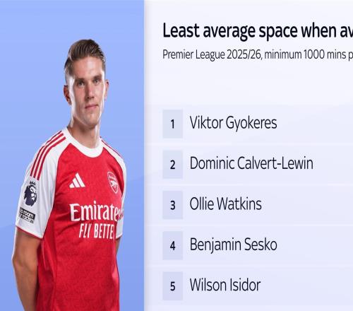 1月17日,天空体育的数据统计显示,阿森纳中锋哲凯赖什是英超被盯防最严密的球员。根据数据可以看出,哲凯赖什是英超中被防守最严密、可用空间最少的球员,他的平均可活动范围仅有