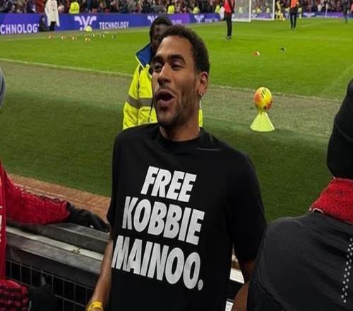 梅努的哥哥现身老特拉福德,衣服上写着“给科比梅努自由”